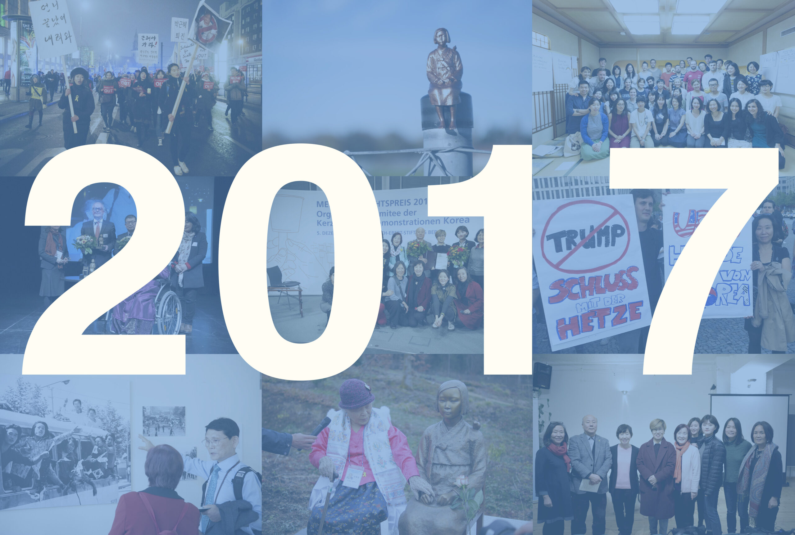 Die AG „Trostfrauen“ im Korea Verband setzt sich seit zwei Jahren für eine Annullierung der Vereinbarung und Neuverhandlungen zur Lösung des Problems ein. 2017 haben wir viel erreicht, dass die Thematik auch hier bekannter wird und von deutscher Seite eine Lösung der „Trostfrauen“-Frage eingefordert wird: Im Rahmen eines Besuchs der Überlebenden An Jeom-Soon stellte die koreanische Community in Wiesent bei Regensburg die erste Friedensstatue in Deutschland auf. Wir organsierten für Frau An und die Delegation aus Suwon eine Veranstaltung in Kooperation mit Han-In Gemeinde in der Heilandskirche und eine Demonstration zum internationalen Weltfrauentag. Bei unserer jährlichen Mahnwache zum Internationalen Gedenktag für die „Trostfrauen“ wurde mit der Performance „Lebende Statuen“ den Betroffenen aus 13 Ländern gedacht.
