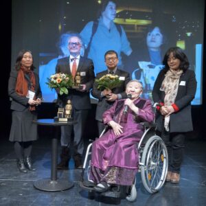 Zum Kirchentag in Berlin luden wir Ende Mai die Überlebende Gil Won-ok ein, um mit Opfern des IS über die Überwindung sexueller Gewalt in militärischen Konflikten zu diskutieren. Dies wurde auch im Rahmen unserer Konferenz „Sexuelle Gewalt in militärischen Konflikten“ am 2. Dezember thematisiert, zu der Gil Won-ok trotz ihres hohen Alters nochmals anreiste. Bei einer Zeremonie würdigte sie sechs Parlamente für ihre Resolutionen zur „Trostfrauen“-Frage. Mit dem Filmmonat „Women’s Bodies as Battlefield“ im November machten wir deutlich, dass es auch außerhalb Koreas viele Betroffene des „Trostfrauen“-Systems gibt.