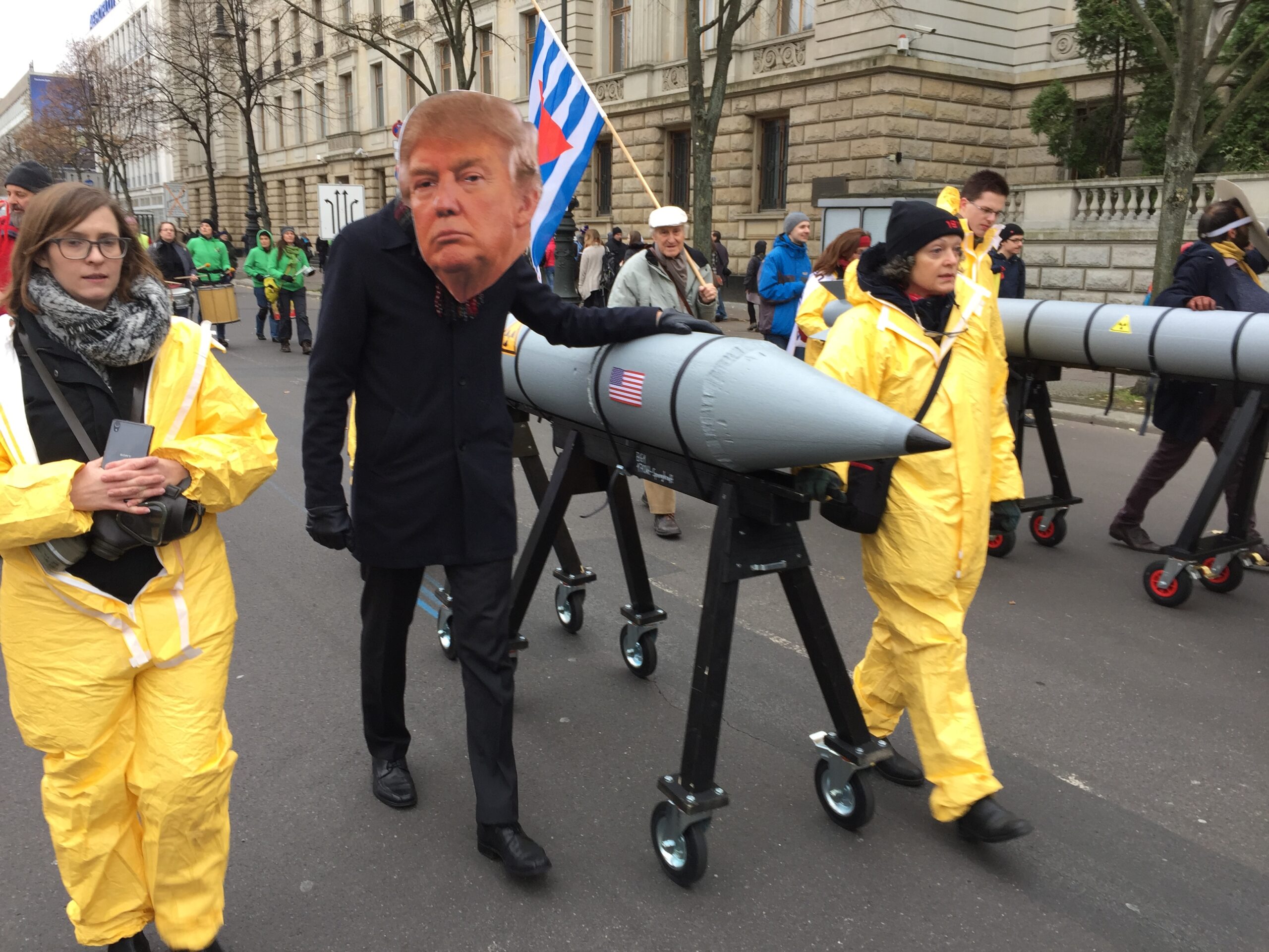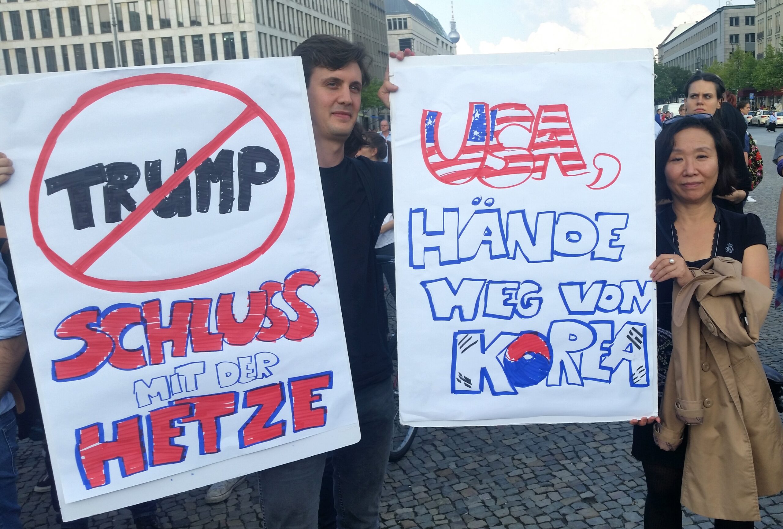 Nach der Wahl Donald Trumps zum US-Präsidenten, herrschte zunächst Unsicherheit, wie dessen Regierung mit Nordkorea umgehen wird. Doch nachdem Nordkorea erfolgreich Interkontinentalraketen getestet hatte, die auch das amerikanische Festland erreichen könnten, eskalierten die Drohgebärden Nordkoreas und der USA. Ein militärischer Konflikt schien unmittelbar bevorzustehen. Der Korea Verband forderte in zahlreichen Interviews und einer Presseerklärung ein Ende der Provokationen und einen Neustart für den direkten Dialog. Wir beteiligten uns zudem an Demonstrationen wie der Menschenkette für Atomwaffenverbot, um die Bundesregierung, die USA und Nordkorea zur atomaren Abrüstung und zur Unterzeichnung des Atomwaffenverbots zu drängen.