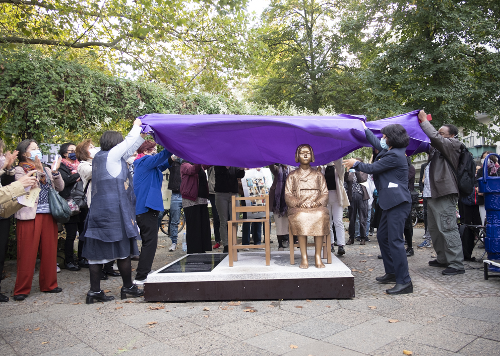 Die Aktionsgruppe „Trostfrauen“ des Berliner Korea-Verbands hatte die Friedensstatue Ende September gemeinsam mit anderen zivilgesellschaftlichen Organisationen aus Südkorea und Deutschland enthüllt. Sie erinnert an das Schicksal von Hunderttausenden Mädchen und Frauen, die während des Asien-Pazifik-Kriegs (1931-1945) vom japanischen Militär verschleppt und als sogenannte „Trostfrauen“ sexuell versklavt wurden. Hier handelt es sich um historische Fakten, die von japanischen Rechten und Nationalisten seit Jahrzehnten geleugnet werden. „Das Bezirksamt Mitte konstruiert fadenscheinige Pseudo-Argumente, um Tokio gefällig zu sein“, sagt die Vorsitzende des Korea-Verbands, Nataly Jung-Hwa Han. „Der Korea-Verband hat von Anfang an transparent gearbeitet und auch darauf hingewiesen, dass mit deutlichen Protesten der japanischen Regierung zu rechnen sei.“ Der genaue Wortlaut der erklärenden Texttafel wurde zu keinem Zeitpunkt von der zuständigen Kommission Kunst im Stadtraum/Kunst am Bau angefordert, so Han. „Ihr jetziger Inhalt entspricht genau den Angaben aus unserem Genehmigungsantrag. Das Bezirksamt Mitte wusste also, dass die Statue die nachgewiesenen Verbrechen der kaiserlich-japanischen Armee thematisieren würde.“