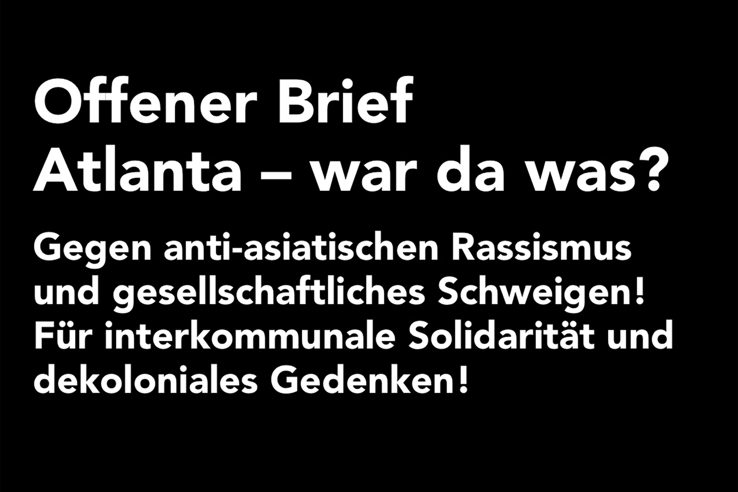 Mit Bestürzung müssen wir zur Kenntnis nehmen, dass die gesellschaftspolitische Bedeutung dieses anti-asiatischen Massenmords weder in den USA und noch weniger in Deutschland tatsächlich anerkannt wird. Politisch wurde das Massaker an unschuldigen und unbewaffneten Opfern bisher nicht als terroristischer Anschlag gewertet und strafrechtlich auch nicht als „racial hate crime“ verfolgt. Dabei steht außer Frage, dass die Mordtat geplant war und mit menschenverachtender Brutalität auf asiatische Frauen in asiatisch-diasporischen Räumen zielt. Angesichts der Tragweite dieses Ereignisses sind wir enttäuscht und wütend, aber nicht überrascht, dass ein Großteil der deutschen Medien nur spärlich über dieses Ereignis berichtet und unzureichend über historische wie gesellschaftliche Hintergründe informiert. Auch die deutsche Politik und Gesellschaft hat diese Morde nicht zur Kenntnis genommen. Damit setzt sich eine Tradition fort, in der anti-asiatischer Rassismus in der Gesellschaft systematisch unterschätzt, meist institutionell negiert und immer noch zu oft unsichtbar gemacht wird.