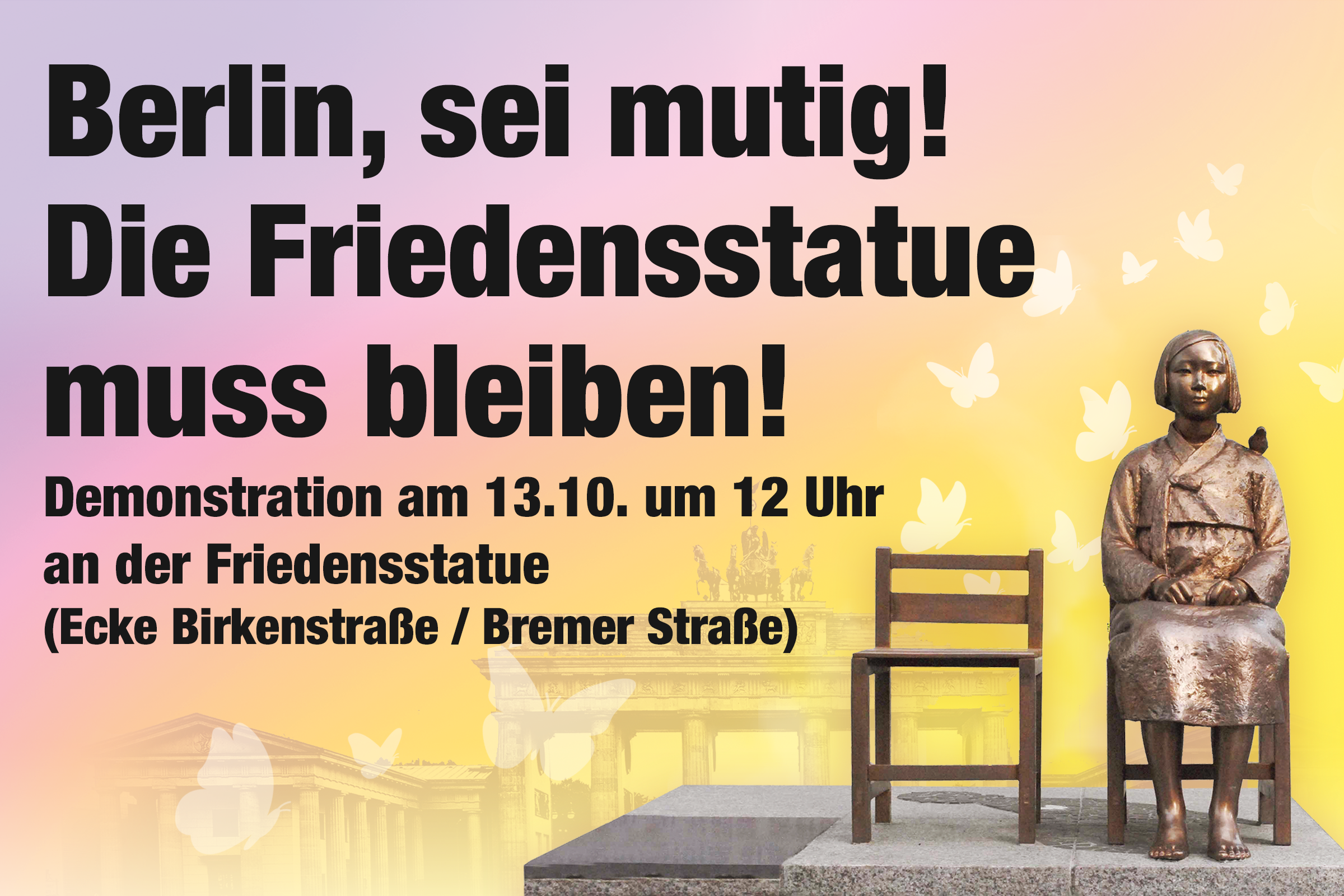 Demo: Berlin, sei mutig! Die Friedensstatue muss bleiben!